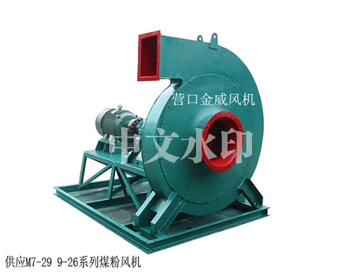 该风机是按热电站锅炉煤粉燃烧系统所需性能设计,用于向锅炉吹送煤粉,煤粉不能直接经过叶轮,否则叶轮极易磨损。蜗壳内部衬有护板,以便磨损后更换。轴承箱内存有润滑油,供轴承散热,并装有冷却水管,以冷却润滑油。