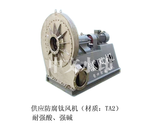 该类型风机主要用于腐蚀气体的输送,广泛应用于冶金,石油化工,氯碱,造纸,制盐,医药等行业。在常温下,钛可以安然无恙的躺在各种强酸强碱的溶液中,王水也不能腐蚀它,强度是不锈钢的三倍,特别抗腐蚀。
